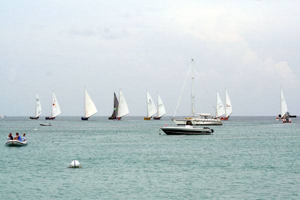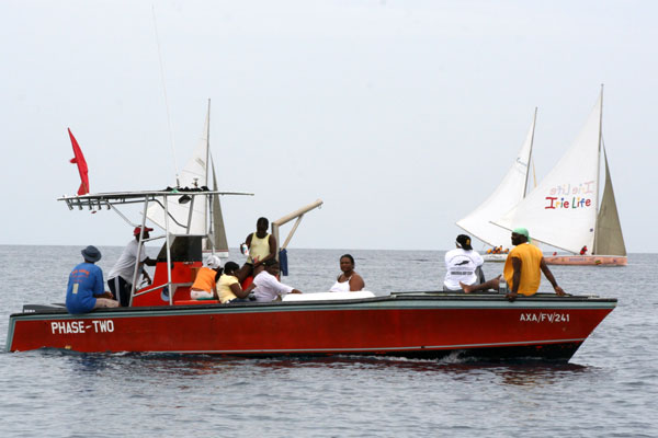 Photo Theme : "Around The Race" - by EAB On May 31, 2007 the humid air permitted a keen competition as the boats set sail from Sandy Ground going north and east past Shoal Bay, Island Harbour, and Windward Point. At the South Western end of the island the picture was very different. Dark skies gathered and upon arrival boats were treated to an onslaught of lightening, thunder and rain from a fierce squall. Look at the top two photos and you may see the cyclical cloud formations that gave rise to water spouts. The stillness that followed rendered several boats motionless in the water. AnguillaLNT was aboard the Killy-B with HBR crew and as they broadcasted the event we took the photos. This is Page 1 - be sure to visit Page 2 What was unique about the race? 5 boats abandoned the race due to inability to sail to the final destination in the calm weather. 5 boats abandoned the race after officials called it off. 4 boats finished the race and three of them were awarded positions by consensus. |